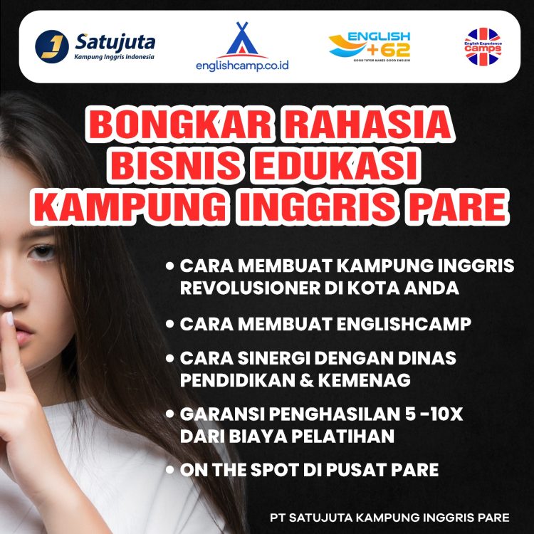 Pelatihan intensif 2 hari offline di Kampung Inggris Pare Kediri — Pulang langsung jadi pemilik cabang resmi PT Satujuta Kampung Inggris di kecamatan Anda!